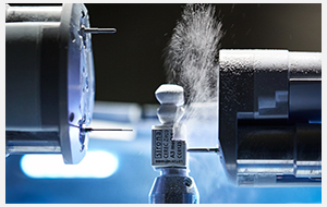ミリングマシンと呼ばれる機械(CAM)が、コンピュータで設計されたデータをもとにセラミックブロックを削り出し、修復物を精密に整えていきます。
